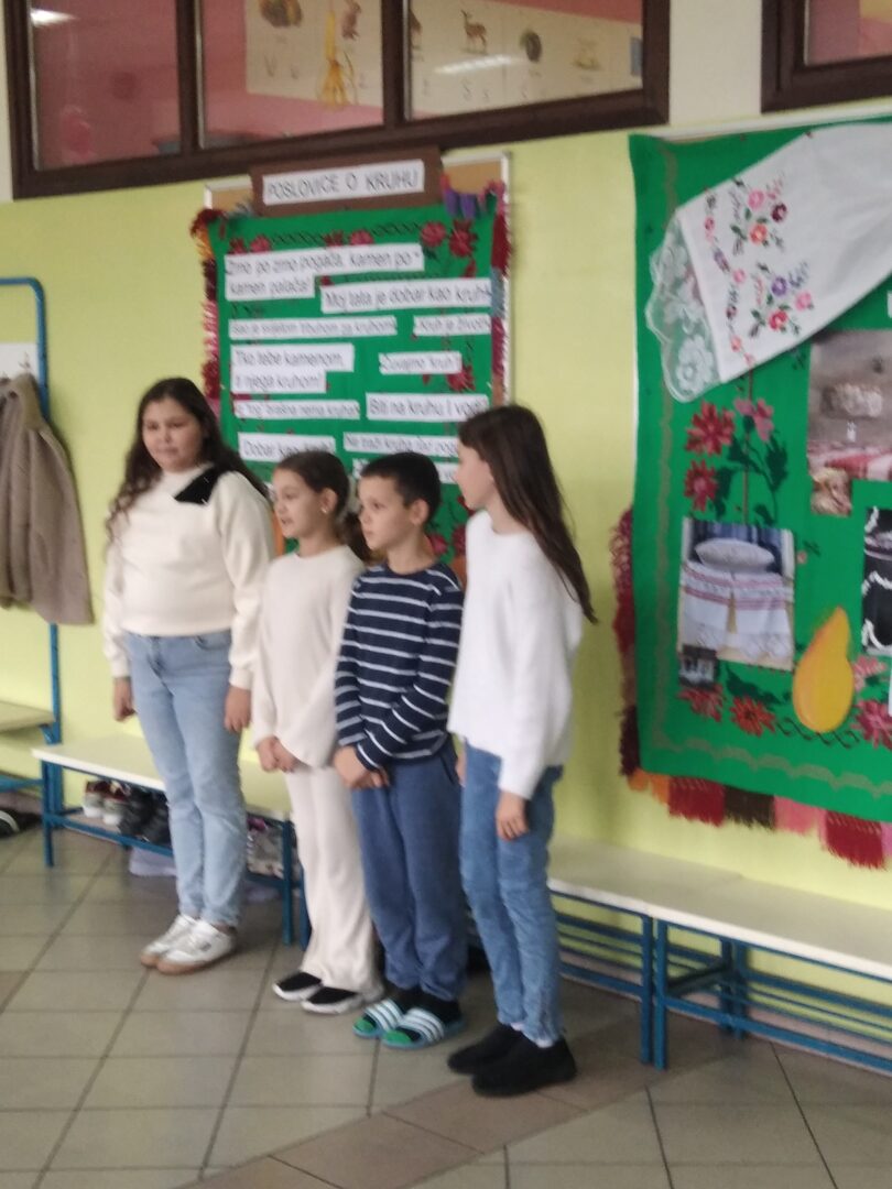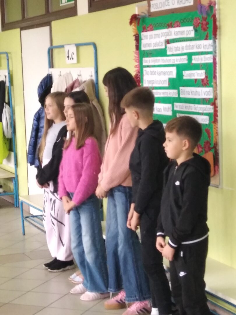Dana 24.10.2025.godiine u PŠ na Koloniji obilježili smo Dane kruha prigodnim programom koje su priredile vjeroučiteljice, učiteljice i učitelji razredne nastave sa svojim učenicima. Na početku nas je pozdravio i uputio riječ zahvale naš ravnatelj Igor Nikičić, a na kraju sve nas je blagoslovio naš župnik Ivan Bešlić, koji nam je rekao i nekoliko poticajnih misli o kruhu i o nesebičnom dijeljenju s drugima.