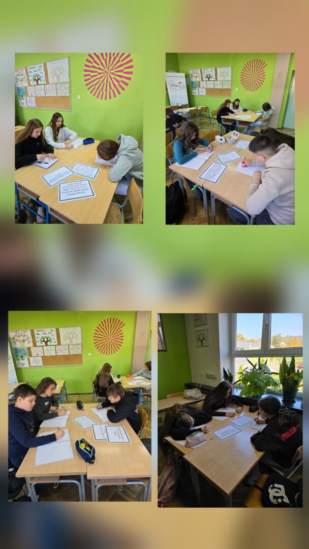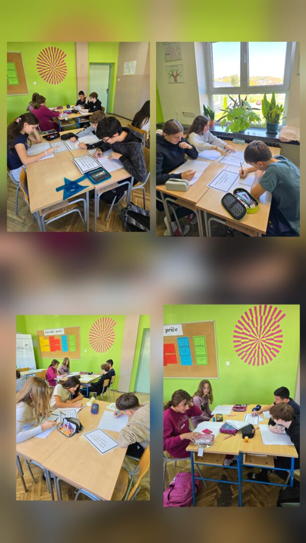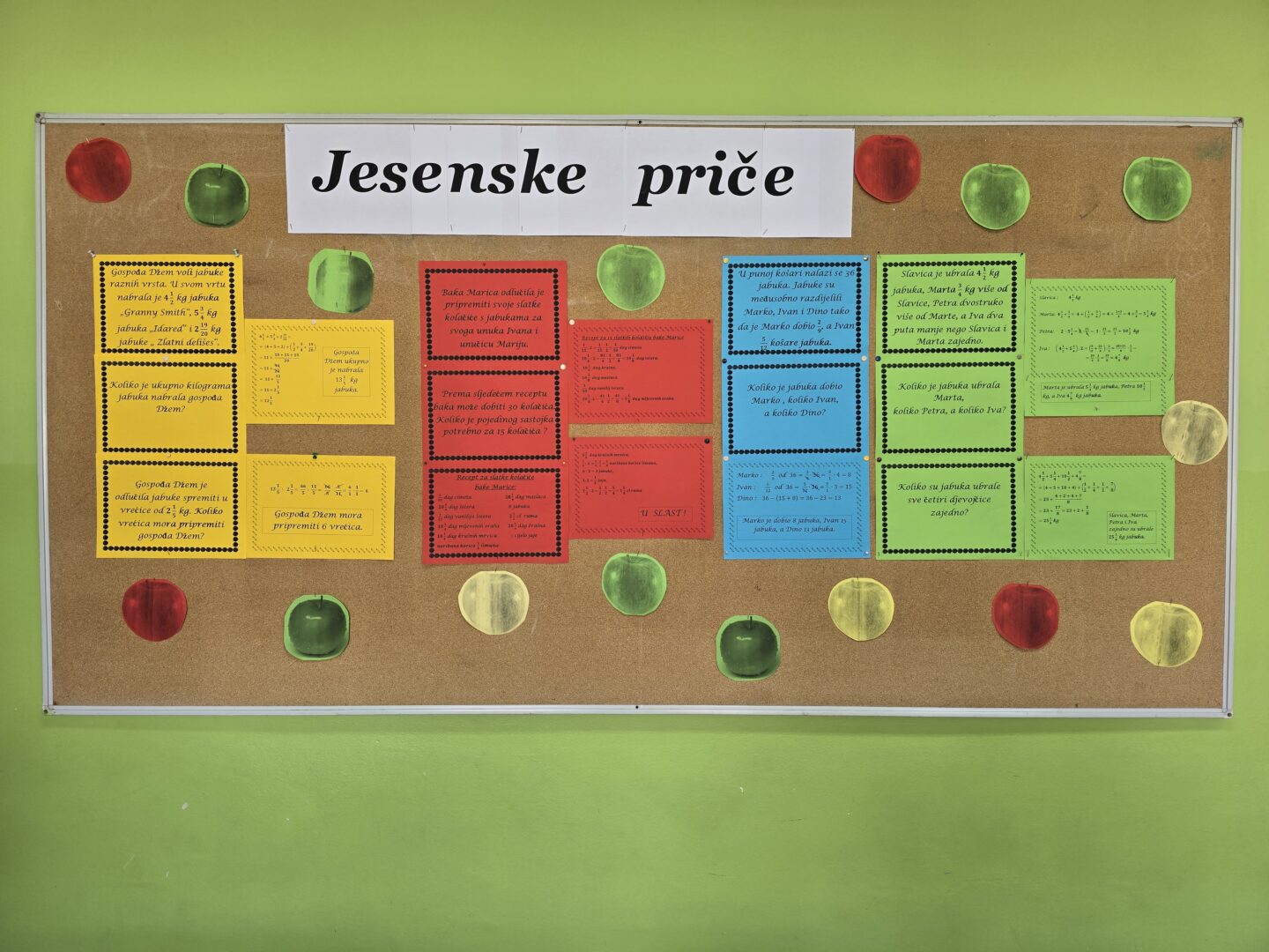 U sklopu aktivnosti, učenici 7.a i 7.b razreda sudjelovali su u grupnom radu pod nazivom “Jesenske priče”. Svaka je grupa dobila zadatak koji je uključivao rješavanje matematičkih problema tj. zadataka riječima.