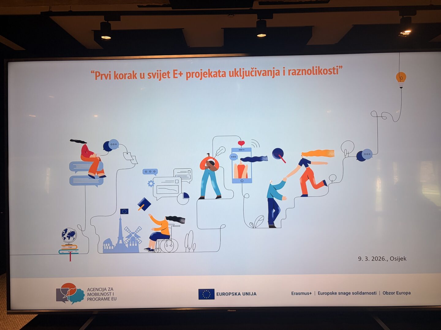 Dana 9.3.2026. su predstavnici naše škole, Ema Filajdić, koordinatorica akreditiranog projekta „Forward together“ (Uključivanje i raznolikost) i ravnatelj škole i voditelj projekta Igor Nikičić prisustvovali edukaciji pod nazivom „Kako razvijati Erasmus+ projekte uključivanja i raznolikosti“ koji se održao u Čepinu. Edukacija je sadržavala komponente o uključivanju i raznolikosti, o načinima izrade koji doprinose uključivanja i raznolikosti i E+ mehanizmi za podržavanje uključivanja i raznolikosti te sajam projekata te sažimanje glavnih smjernica za provedbu projekta. Članovi našeg projektnog tima su ovu edukaciju iskoristili za informiranje i usvajanje znanja o navedenim temama u svrhu pojačavanja učinaka implementacije naših projekata kao i mogućnosti integriranja ovih i ovakvih tema u sve aktivnosti škole, ne samo projektne aktivnosti nego i u svakodnevni rad i djelovanje.
