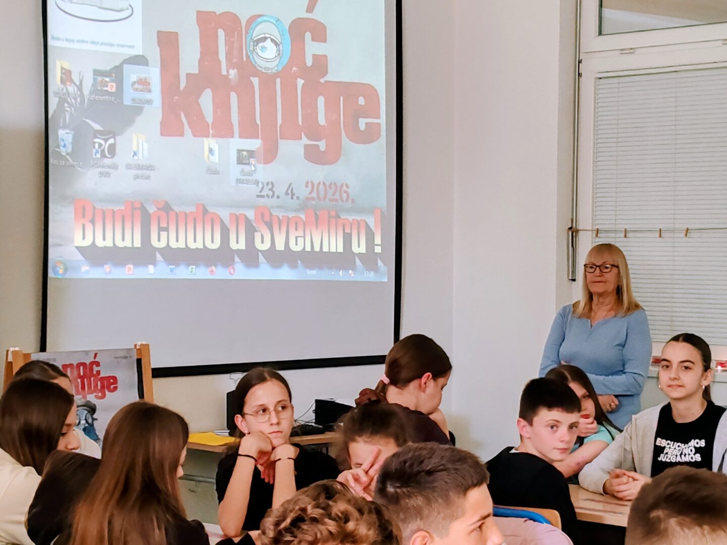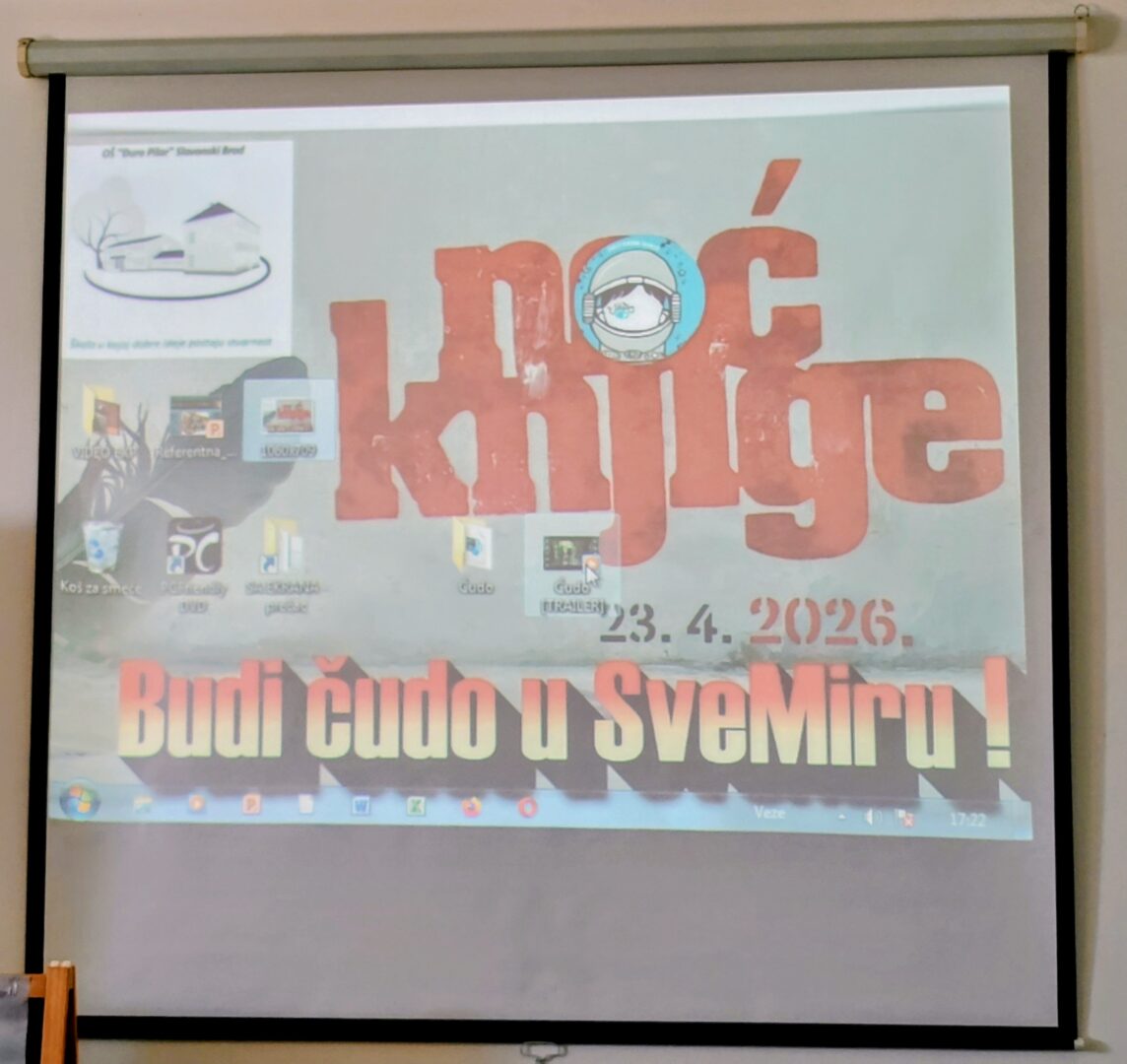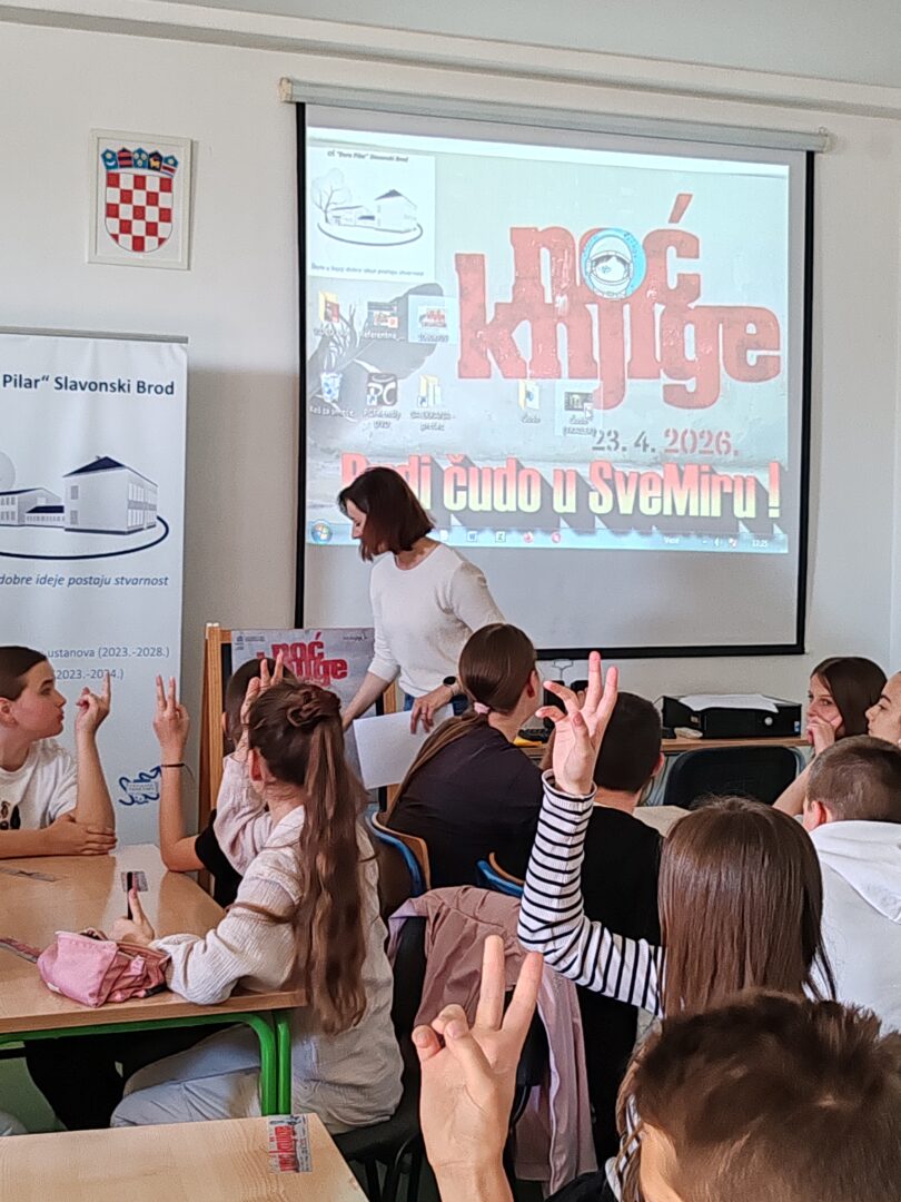 Noć knjige održana je 23. travnja 2026. godine pod motom „Budi i ti čudo u sveMiru!“. Na početku je nastavnica Irena Tomašić održala uvodni govor u kojem je objasnila kako je ova manifestacija pokrenuta 2012. godine s ciljem poticanja čitanja i razgovora o knjigama. Istaknuta je i važnost obilježavanja Svjetskog dana knjige i autorskih prava 23. travnja te Dana hrvatske knjige 22. travnja.