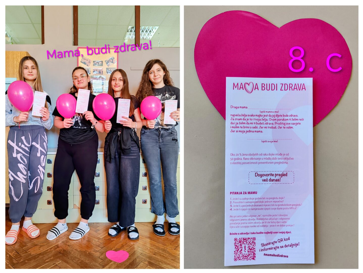 Tijekom mjeseca listopada naša se škola uključila u nacionalni projekt „Mama, budi zdrava 2025.- Ružičasti listopad“ u suradnji s udrugom SVE za NJU. Cilj projekta je potaknuti brigu o zdravlju žena, osobito mladih majki, te promicati Nacionalne programe ranog otkrivanja raka.